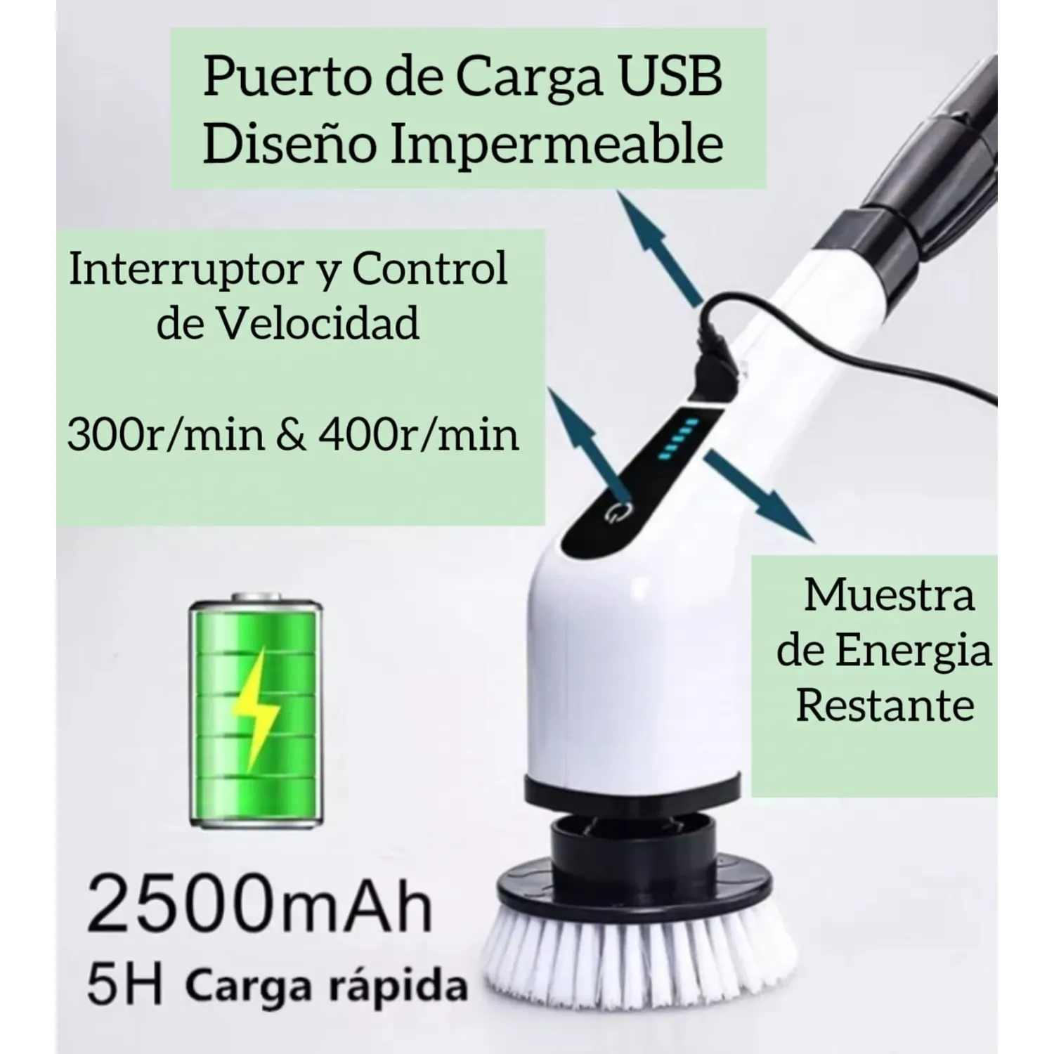 Este limpiador giratorio está diseñado específicamente para facilitar la limpieza en toda tu casa, desde baños hasta cocinas y pisos. Gracias a su batería de alta capacidad de 2500 mAh, ofrece un rendimiento excepcional.